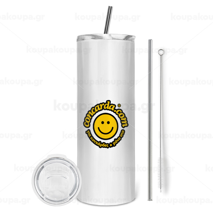 Concarda, Tumbler ποτήρι θερμό από ανοξείδωτο ατσάλι 600ml, με μεταλλικό καλαμάκι & βούρτσα καθαρισμού