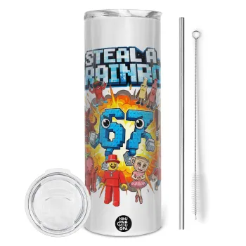 Steal a Brainrot 67 Roblox Style, Tumbler ποτήρι θερμό από ανοξείδωτο ατσάλι 600ml, με μεταλλικό καλαμάκι & βούρτσα καθαρισμού