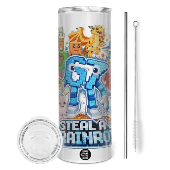 Steal a Brainrot Six Seven, Tumbler ποτήρι θερμό από ανοξείδωτο ατσάλι 600ml, με μεταλλικό καλαμάκι & βούρτσα καθαρισμού