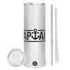 CAPTAIN, Tumbler ποτήρι θερμό από ανοξείδωτο ατσάλι 600ml, με μεταλλικό καλαμάκι & βούρτσα καθαρισμού