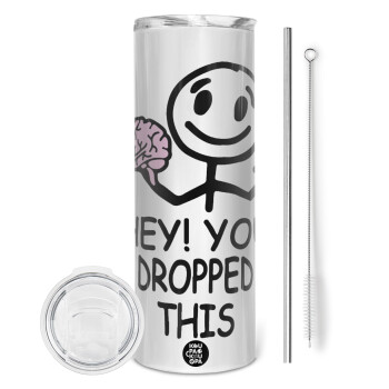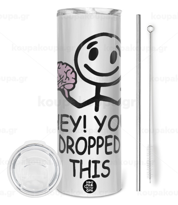 Hey! You dropped this, Tumbler ποτήρι θερμό από ανοξείδωτο ατσάλι 600ml, με μεταλλικό καλαμάκι & βούρτσα καθαρισμού