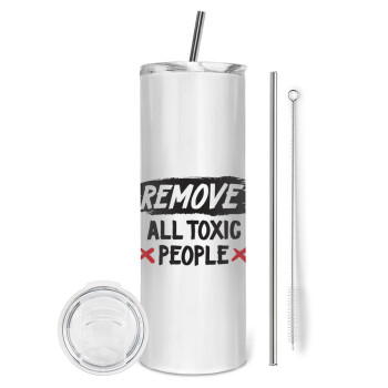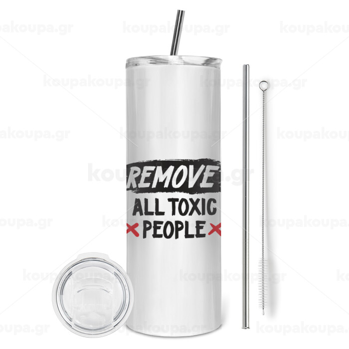 Remove all toxic people, Tumbler ποτήρι θερμό από ανοξείδωτο ατσάλι 600ml, με μεταλλικό καλαμάκι & βούρτσα καθαρισμού