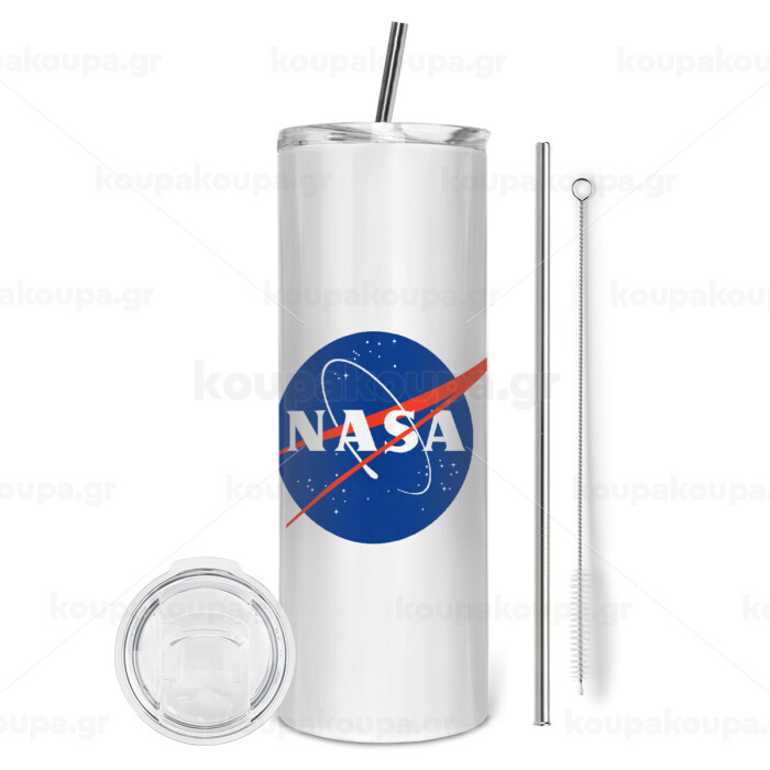 Nasa, Tumbler ποτήρι θερμό από ανοξείδωτο ατσάλι 600ml, με μεταλλικό καλαμάκι & βούρτσα καθαρισμού