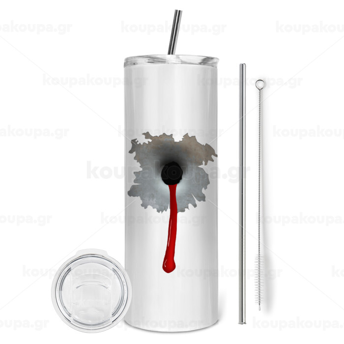 Bullet holes, Tumbler ποτήρι θερμό από ανοξείδωτο ατσάλι 600ml, με μεταλλικό καλαμάκι & βούρτσα καθαρισμού