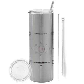 Camera viewfinder, Tumbler ποτήρι θερμό Ασημένιο από ανοξείδωτο ατσάλι 600ml, με μεταλλικό καλαμάκι & βούρτσα καθαρισμού