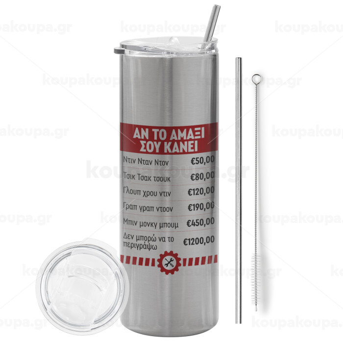 Annoying Noise in Car, Tumbler ποτήρι θερμό Ασημένιο από ανοξείδωτο ατσάλι 600ml, με μεταλλικό καλαμάκι & βούρτσα καθαρισμού