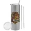 Gryffindor, Harry potter, Tumbler ποτήρι θερμό Ασημένιο από ανοξείδωτο ατσάλι 600ml, με μεταλλικό καλαμάκι & βούρτσα καθαρισμού