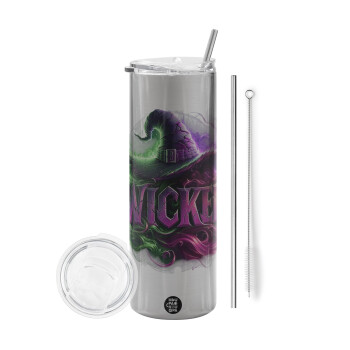 Mandalorian, Tumbler ποτήρι θερμό Ασημένιο από ανοξείδωτο ατσάλι 600ml, με μεταλλικό καλαμάκι & βούρτσα καθαρισμού