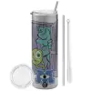 Monster inc, Tumbler ποτήρι θερμό Ασημένιο από ανοξείδωτο ατσάλι 600ml, με μεταλλικό καλαμάκι & βούρτσα καθαρισμού