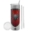 Spider-man, Tumbler ποτήρι θερμό Ασημένιο από ανοξείδωτο ατσάλι 600ml, με μεταλλικό καλαμάκι & βούρτσα καθαρισμού