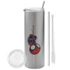Spiderman upside down, Tumbler ποτήρι θερμό Ασημένιο από ανοξείδωτο ατσάλι 600ml, με μεταλλικό καλαμάκι & βούρτσα καθαρισμού
