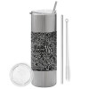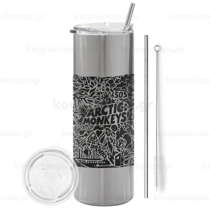Arctic Monkeys, Tumbler ποτήρι θερμό Ασημένιο από ανοξείδωτο ατσάλι 600ml, με μεταλλικό καλαμάκι & βούρτσα καθαρισμού