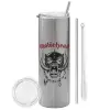 motorhead, Tumbler ποτήρι θερμό Ασημένιο από ανοξείδωτο ατσάλι 600ml, με μεταλλικό καλαμάκι & βούρτσα καθαρισμού