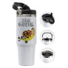 Big mouth, Tumbler ποτήρι θερμό Ασημένιο από ανοξείδωτο ατσάλι 600ml, με μεταλλικό καλαμάκι & βούρτσα καθαρισμού