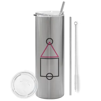 The squid game ojingeo, Tumbler ποτήρι θερμό Ασημένιο από ανοξείδωτο ατσάλι 600ml, με μεταλλικό καλαμάκι & βούρτσα καθαρισμού