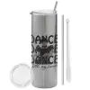 Wednesday dance dance dance, Tumbler ποτήρι θερμό Ασημένιο από ανοξείδωτο ατσάλι 600ml, με μεταλλικό καλαμάκι & βούρτσα καθαρισμού