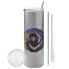 Wednesday dance, Tumbler ποτήρι θερμό Ασημένιο από ανοξείδωτο ατσάλι 600ml, με μεταλλικό καλαμάκι & βούρτσα καθαρισμού