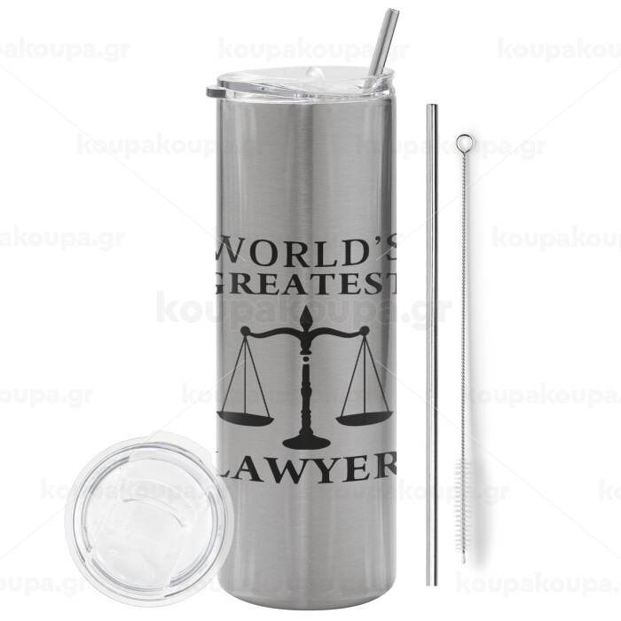 World's greatest Lawyer, Tumbler ποτήρι θερμό Ασημένιο από ανοξείδωτο ατσάλι 600ml, με μεταλλικό καλαμάκι & βούρτσα καθαρισμού