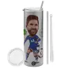 Lionel Messi drawing, Tumbler ποτήρι θερμό Ασημένιο από ανοξείδωτο ατσάλι 600ml, με μεταλλικό καλαμάκι & βούρτσα καθαρισμού