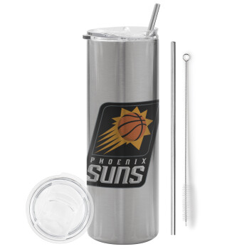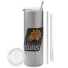 Phoenix Suns, Tumbler ποτήρι θερμό Ασημένιο από ανοξείδωτο ατσάλι 600ml, με μεταλλικό καλαμάκι & βούρτσα καθαρισμού