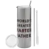 World's greatest farter, Tumbler ποτήρι θερμό Ασημένιο από ανοξείδωτο ατσάλι 600ml, με μεταλλικό καλαμάκι & βούρτσα καθαρισμού