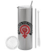 Ημέρα της γυναίκας, Tumbler ποτήρι θερμό Ασημένιο από ανοξείδωτο ατσάλι 600ml, με μεταλλικό καλαμάκι & βούρτσα καθαρισμού