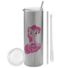 Μικρό μου Πόνυ, Tumbler ποτήρι θερμό Ασημένιο από ανοξείδωτο ατσάλι 600ml, με μεταλλικό καλαμάκι & βούρτσα καθαρισμού