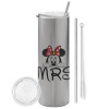 Minnie Mrs, Tumbler ποτήρι θερμό Ασημένιο από ανοξείδωτο ατσάλι 600ml, με μεταλλικό καλαμάκι & βούρτσα καθαρισμού