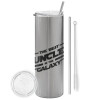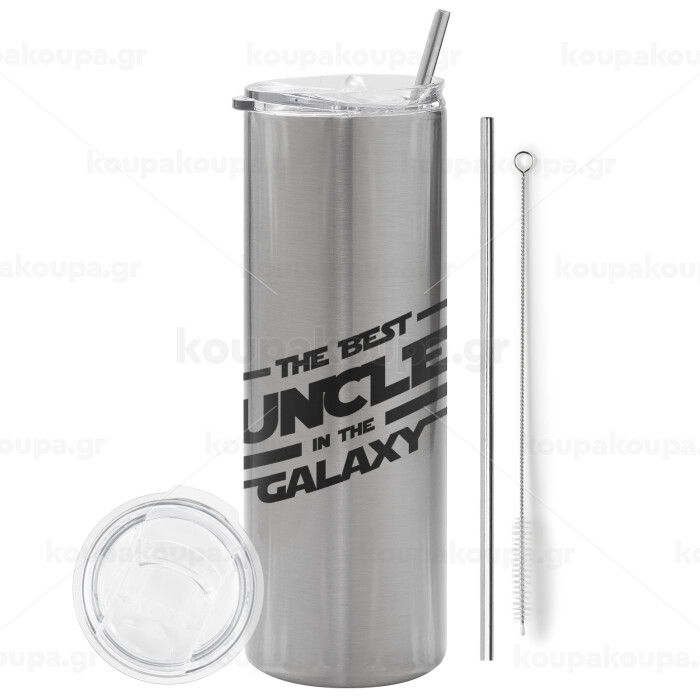 The Best UNCLE in the Galaxy, Tumbler ποτήρι θερμό Ασημένιο από ανοξείδωτο ατσάλι 600ml, με μεταλλικό καλαμάκι & βούρτσα καθαρισμού