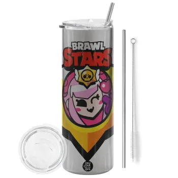 Brawl Stars Melodie, Tumbler ποτήρι θερμό Ασημένιο από ανοξείδωτο ατσάλι 600ml, με μεταλλικό καλαμάκι & βούρτσα καθαρισμού