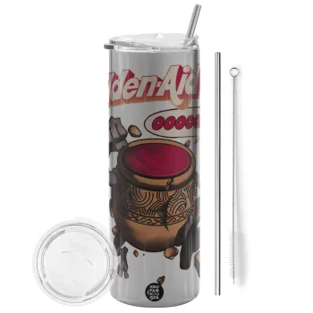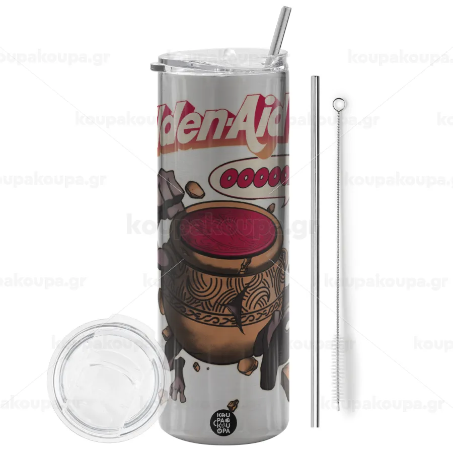 Elden-Aid, Elden Ring inspired , Tumbler ποτήρι θερμό Ασημένιο από ανοξείδωτο ατσάλι 600ml, με μεταλλικό καλαμάκι & βούρτσα καθαρισμού