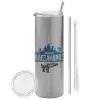 Fortnite with gun με το όνομα σου, Tumbler ποτήρι θερμό Ασημένιο από ανοξείδωτο ατσάλι 600ml, με μεταλλικό καλαμάκι & βούρτσα καθαρισμού