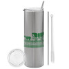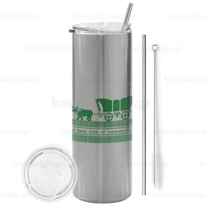 Oregon Trail, cov... edition, Tumbler ποτήρι θερμό Ασημένιο από ανοξείδωτο ατσάλι 600ml, με μεταλλικό καλαμάκι & βούρτσα καθαρισμού