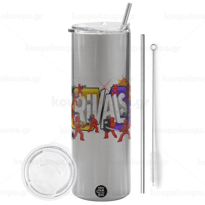 Roblox Rivals, Tumbler ποτήρι θερμό Ασημένιο από ανοξείδωτο ατσάλι 600ml, με μεταλλικό καλαμάκι & βούρτσα καθαρισμού
