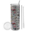 Video Game Studio Logos, Tumbler ποτήρι θερμό Ασημένιο από ανοξείδωτο ατσάλι 600ml, με μεταλλικό καλαμάκι & βούρτσα καθαρισμού