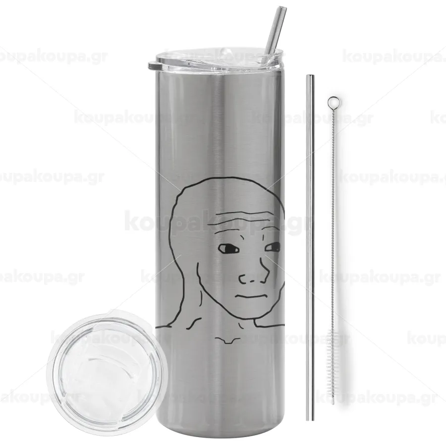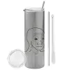 Feel guy, Tumbler ποτήρι θερμό Ασημένιο από ανοξείδωτο ατσάλι 600ml, με μεταλλικό καλαμάκι & βούρτσα καθαρισμού
