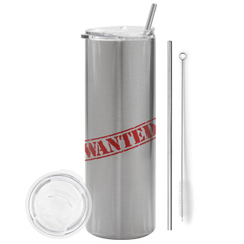 Wanted, Tumbler ποτήρι θερμό Ασημένιο από ανοξείδωτο ατσάλι 600ml, με μεταλλικό καλαμάκι & βούρτσα καθαρισμού
