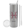 Ζώδια Ιχθύες, Tumbler ποτήρι θερμό Ασημένιο από ανοξείδωτο ατσάλι 600ml, με μεταλλικό καλαμάκι & βούρτσα καθαρισμού