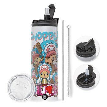Travel Tumbler θερμό με διπλό καπάκι, μεταλλικό καλαμάκι και βούρτσα καθαρισμού (Ανωξείδωτο 304 Food grade, BPA free, 600ml) με θέμα Παιδικά
