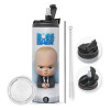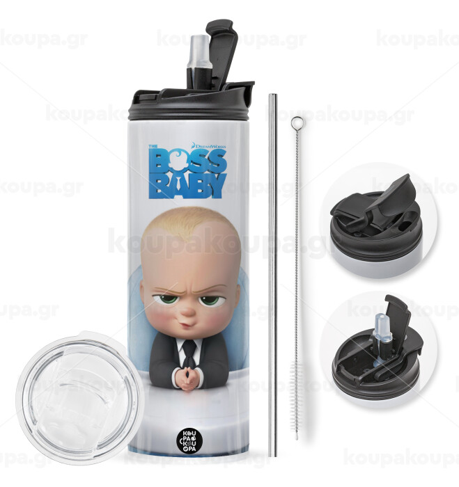 The boss baby, Travel Tumbler θερμό με διπλό καπάκι, μεταλλικό καλαμάκι και βούρτσα καθαρισμού (Ανωξείδωτο 304 Food grade, BPA free, 600ml)