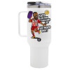 Ροντινέι, "ΚΑΤΩ ΑΠΟ ΤΗΝ ΠΑΝΣΕΛΗΝΟ ΜΟΥ!", Travel Tumbler θερμό με διπλό καπάκι, μεταλλικό καλαμάκι και βούρτσα καθαρισμού (Ανωξείδωτο 304 Food grade, BPA free, 600ml)