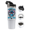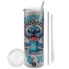 Stitch Touch Me And I Will Bite You, Travel Tumbler θερμό με διπλό καπάκι, μεταλλικό καλαμάκι και βούρτσα καθαρισμού (Ανωξείδωτο 304 Food grade, BPA free, 600ml)