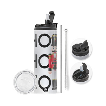 Ho ho ho, Travel Tumbler θερμό με διπλό καπάκι, μεταλλικό καλαμάκι και βούρτσα καθαρισμού (Ανωξείδωτο 304 Food grade, BPA free, 600ml)