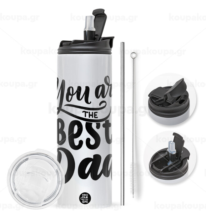 You are the best Dad, Travel Tumbler θερμό με διπλό καπάκι, μεταλλικό καλαμάκι και βούρτσα καθαρισμού (Ανωξείδωτο 304 Food grade, BPA free, 600ml)