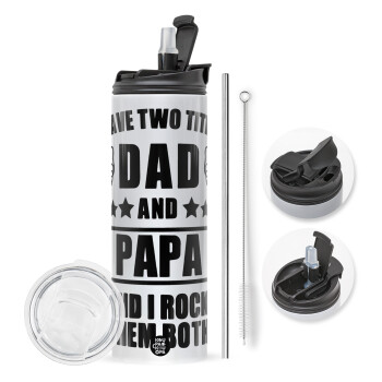 I have two title, DAD & PAPA, Travel Tumbler θερμό με διπλό καπάκι, μεταλλικό καλαμάκι και βούρτσα καθαρισμού (Ανωξείδωτο 304 Food grade, BPA free, 600ml)