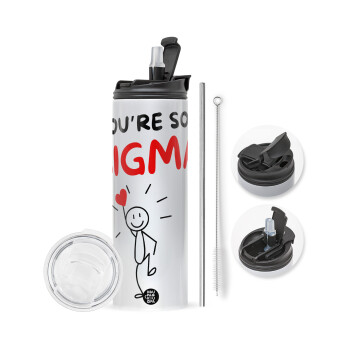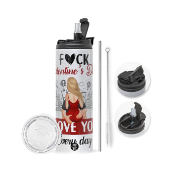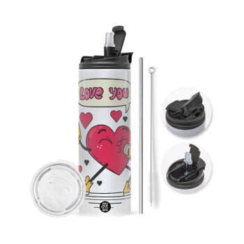 I love You Everyday , Travel Tumbler θερμό με διπλό καπάκι, μεταλλικό καλαμάκι και βούρτσα καθαρισμού (Ανωξείδωτο 304 Food grade, BPA free, 600ml)
