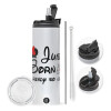 Just born already so loved, Travel Tumbler θερμό με διπλό καπάκι, μεταλλικό καλαμάκι και βούρτσα καθαρισμού (Ανωξείδωτο 304 Food grade, BPA free, 600ml)