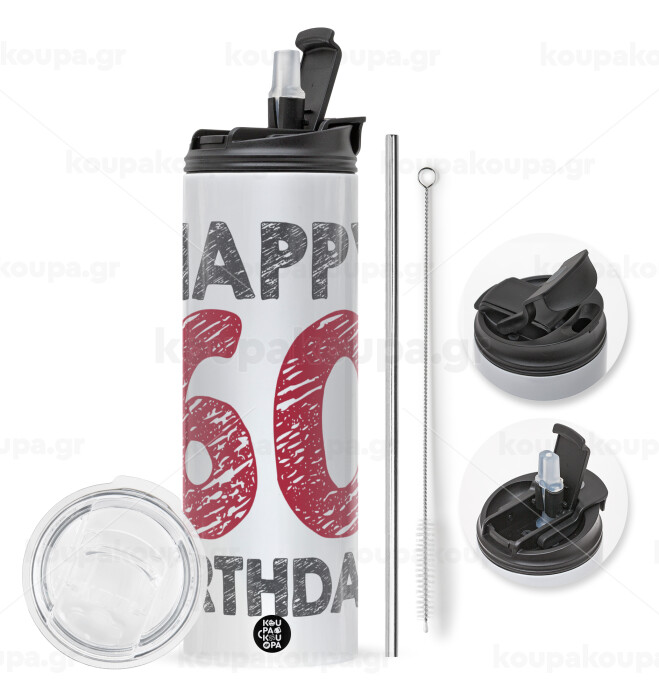 Eco friendly ποτήρι θερμό 600ml, με 2 καπάκια για να επιλέξετε ανάμεσα σε απλό ποτήρι με καλαμάκι ή μετατροπή σε παγούρι θερμό με 2 τρόπους χρήσης (καλαμάκι ή στόμιο) με μεταλλικό επαναχρησιμοποιούμενο καλαμάκι. Απολαύστε το αγαπημένο σας ρόφημα κάθε στιγμή στο μοναδικό αυτό οικολογικό θερμό. Διατηρεί τη θερμοκρασία για αρκετές ώρες και είναι κατασκευασμένο από ανοξείδωτο ατσάλι. Κατάλληλο για ζεστά και κρύα ροφήματα. Συνοδεύεται από βουρτσάκι καθαρισμού για το καλαμάκι.