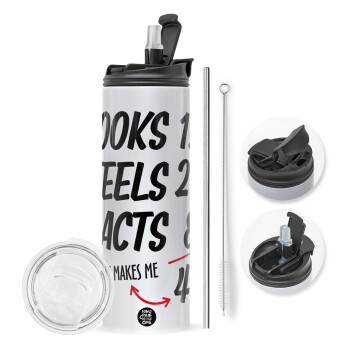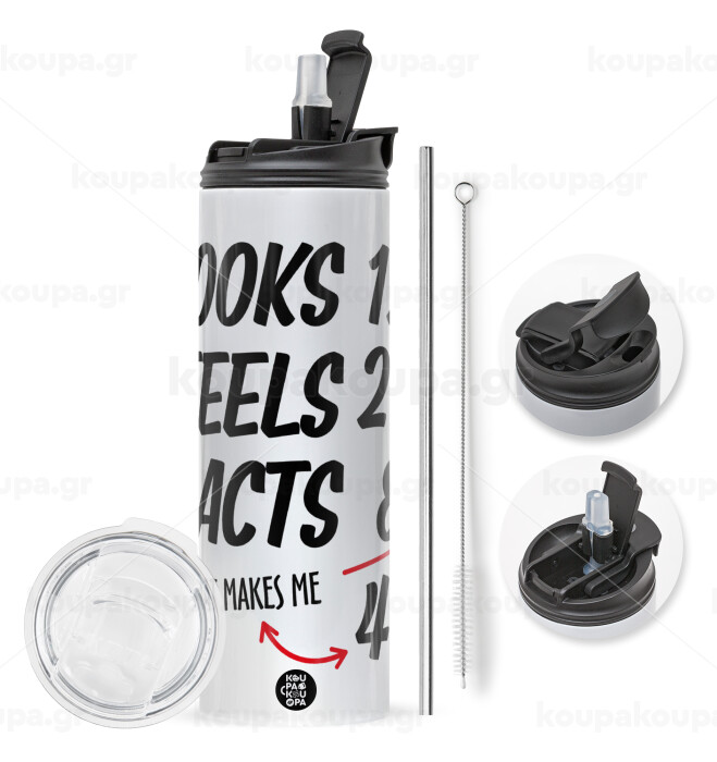 Looks, feels, acts LIKE your AGE, Travel Tumbler θερμό με διπλό καπάκι, μεταλλικό καλαμάκι και βούρτσα καθαρισμού (Ανωξείδωτο 304 Food grade, BPA free, 600ml)