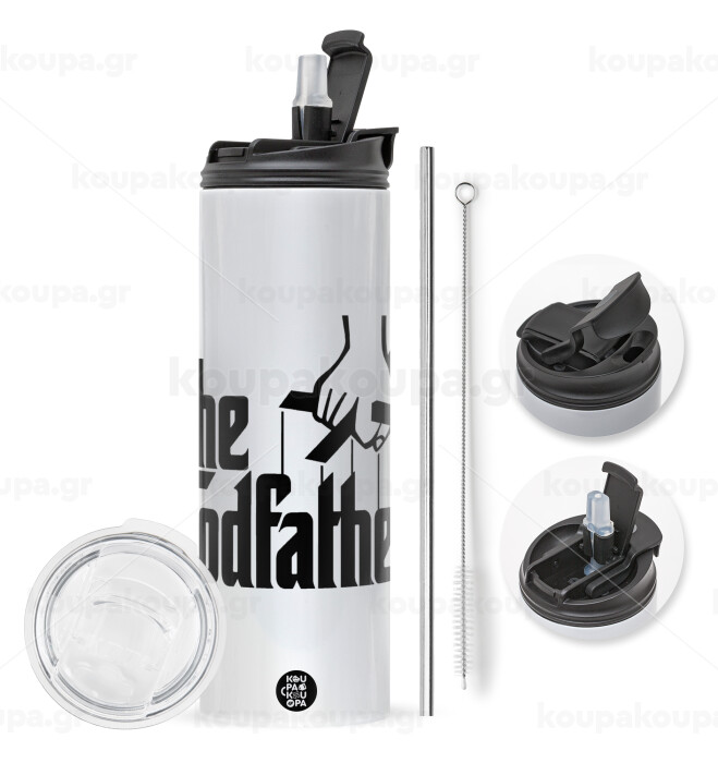 The Godfather, Travel Tumbler θερμό με διπλό καπάκι, μεταλλικό καλαμάκι και βούρτσα καθαρισμού (Ανωξείδωτο 304 Food grade, BPA free, 600ml)